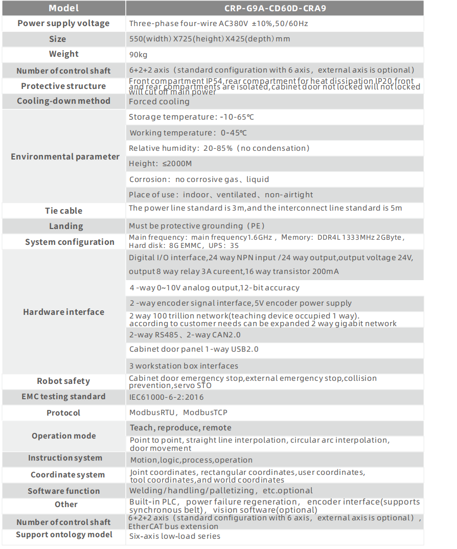 Using imported forced-disconnection relays, dual-circuit emergency stop is provided externally. When any emergency stop button is pressed, the power circuit and servo unit are simultaneously and immediately processed to forcibly stop the robot’s movement, thereby achieving safe emergency stop.