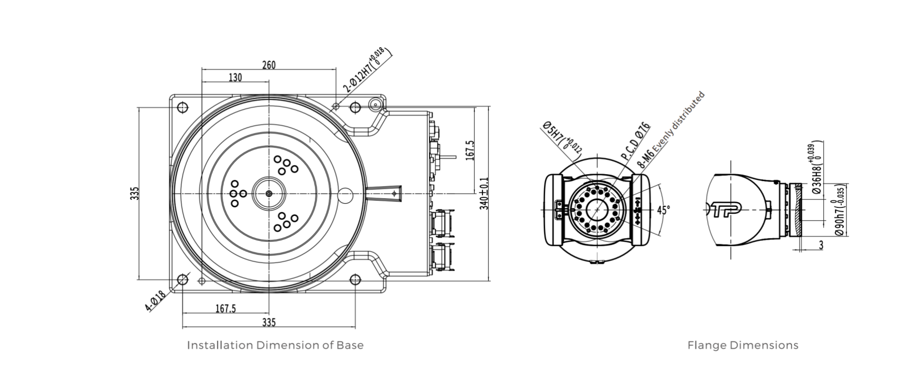 The robot in the axes of J2 J3 J4 is reserved installation holes to install fixed solenoid valve and other accessories. There are IO port and dual-circuit gas pipe at J3 axis to meet the handling application. Driving adopts new advanced PID control technology to achieve faster response; With the functions of observer dynamic compensation and weak magnetism, the electric machine can be better controllable and more stable with higher speed.