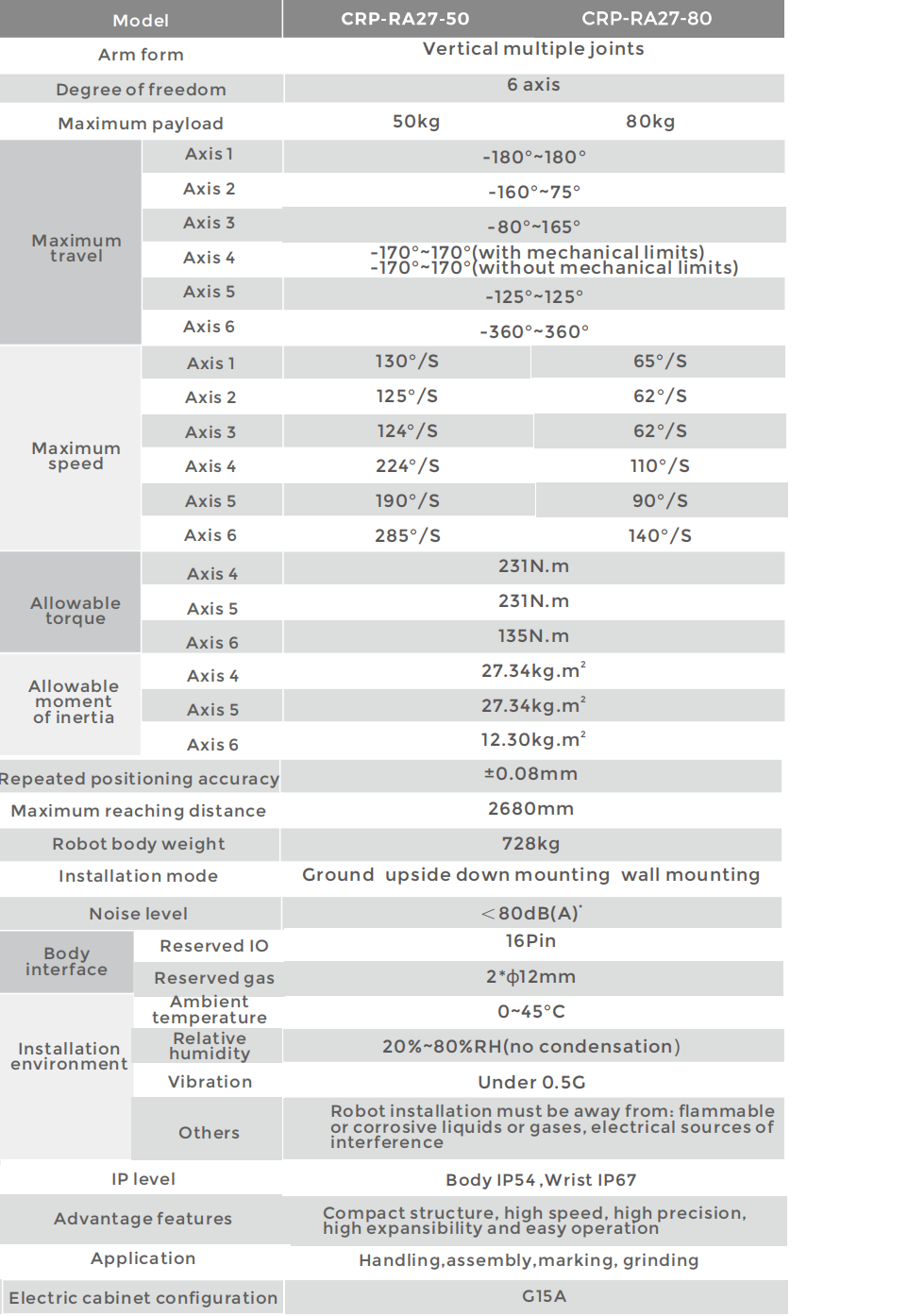 • The robot body is with lD10 dual-circuit gas pipe to meet the handling demand.